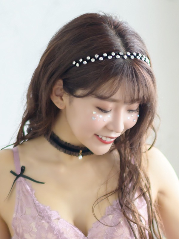 シンプルかつエレガントなキラキラビジューカチューシャ。