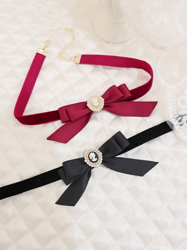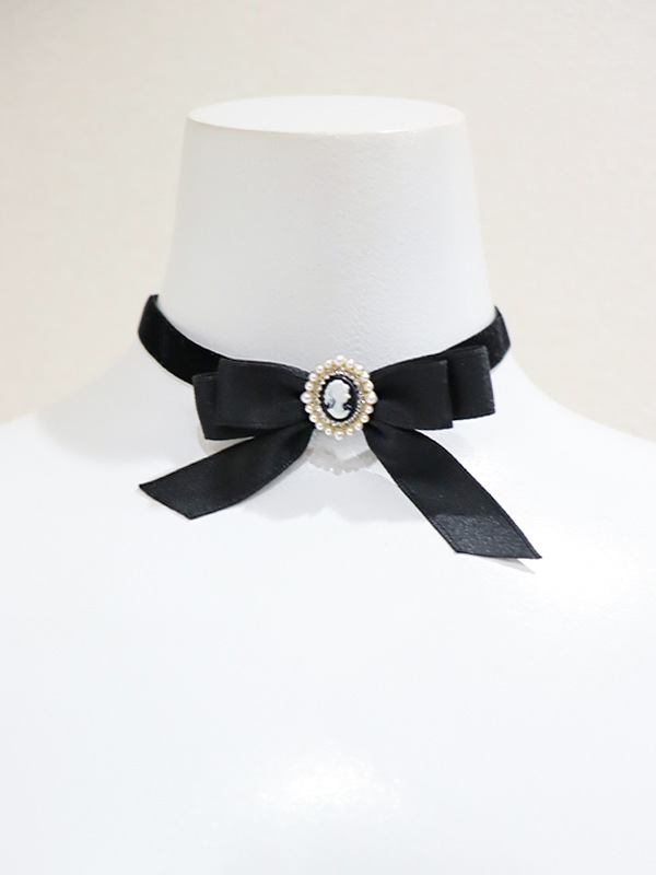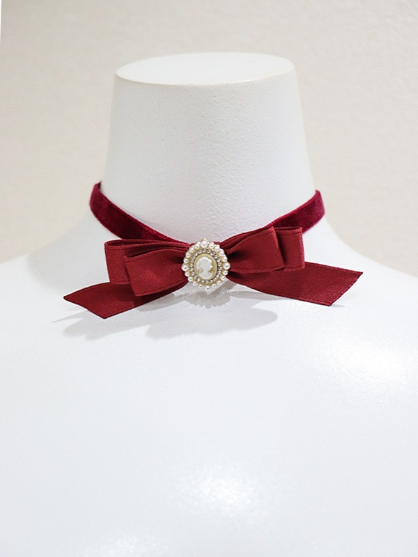 ベロア×カメオモチーフで高級感のある細チョーカー。