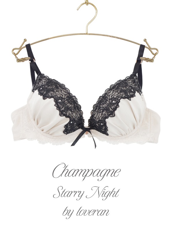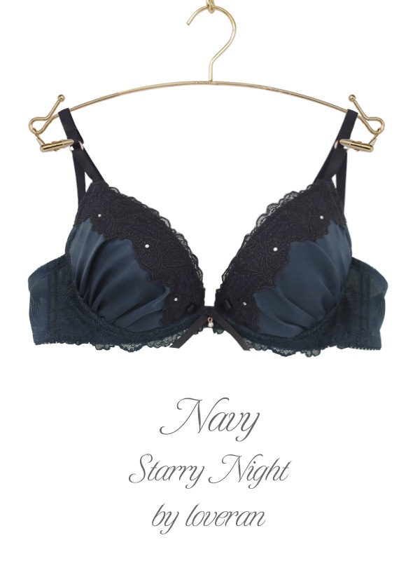しっとり艶めくサテンにケミカルレース、散らばるラインストーン…ロマンチックに輝く星空をイメージした大人上品なランジェリー。