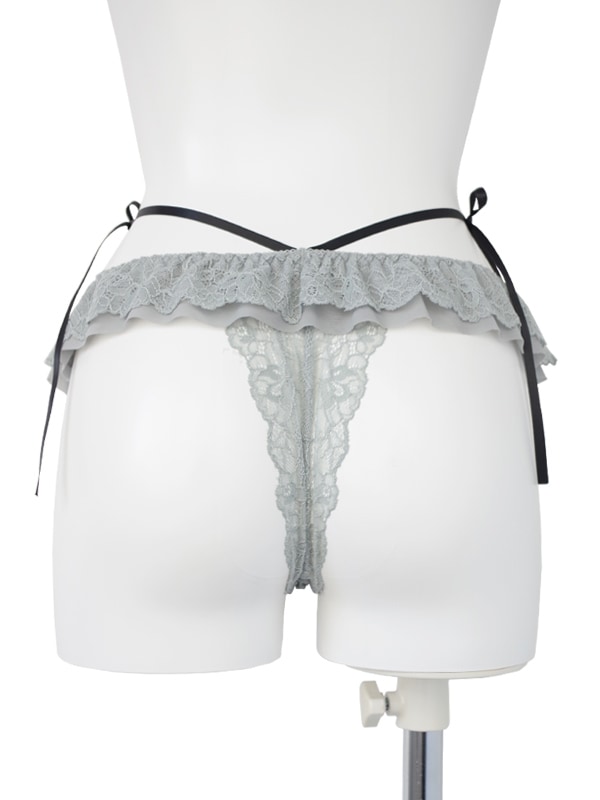 腰上でかわいくリボンを結んであざとさをプラス。ぐるっと一周2段フリルで甘めなTバックとのセットです。