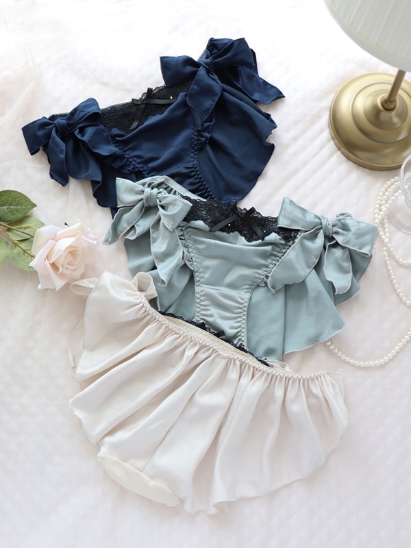 ※ショーツのサイドリボンにはデリケートな素材を使用しています。洗濯は手洗いをおすすめ致します。着用時の摩擦、引っ掛かり等お取り扱いにご注意ください。