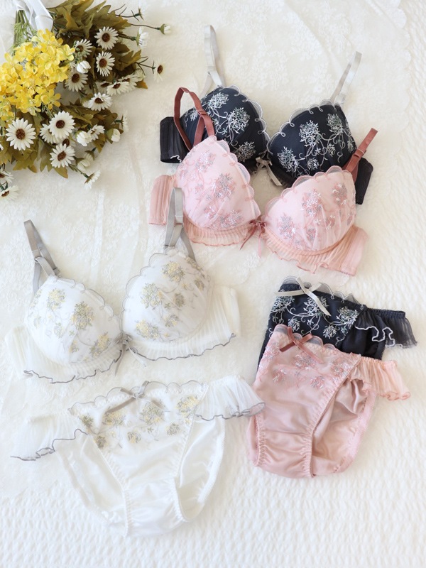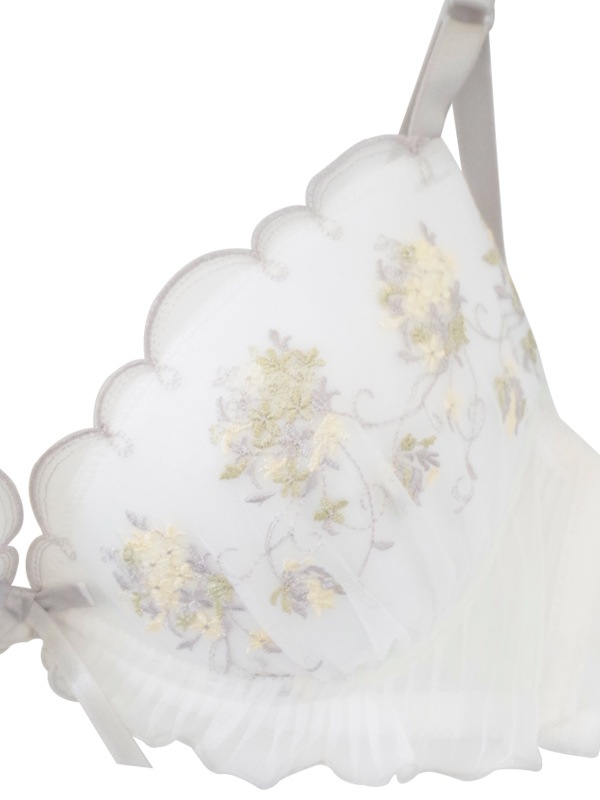 軽やかなシアープリーツ&バイカラーのブーケ柄刺繍でふわっと可憐に。透明感あふれるデザインに仕立てました。