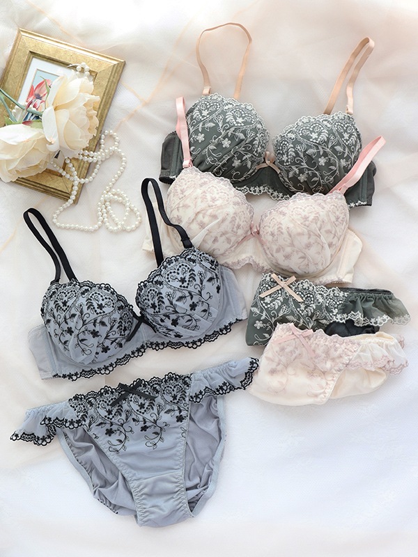 セットショーツは透け感のあるチュールフリルタイプ。全体を包み込む安心感のある履き心地です。