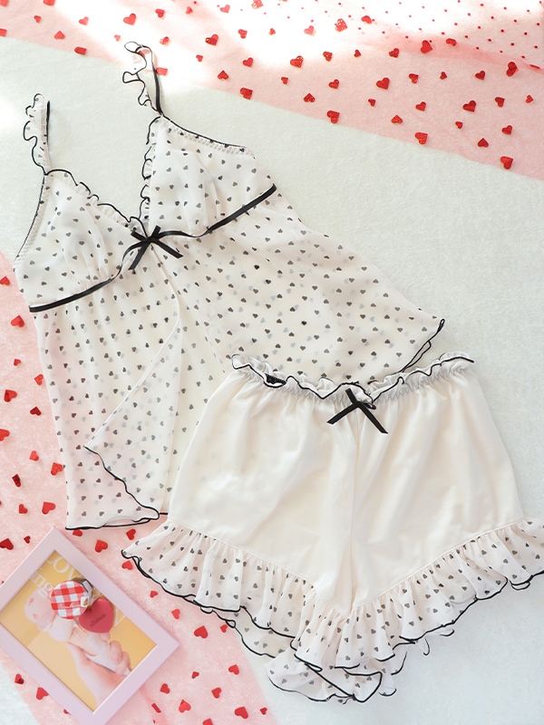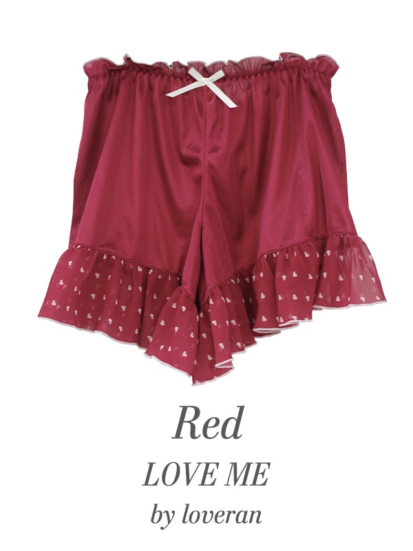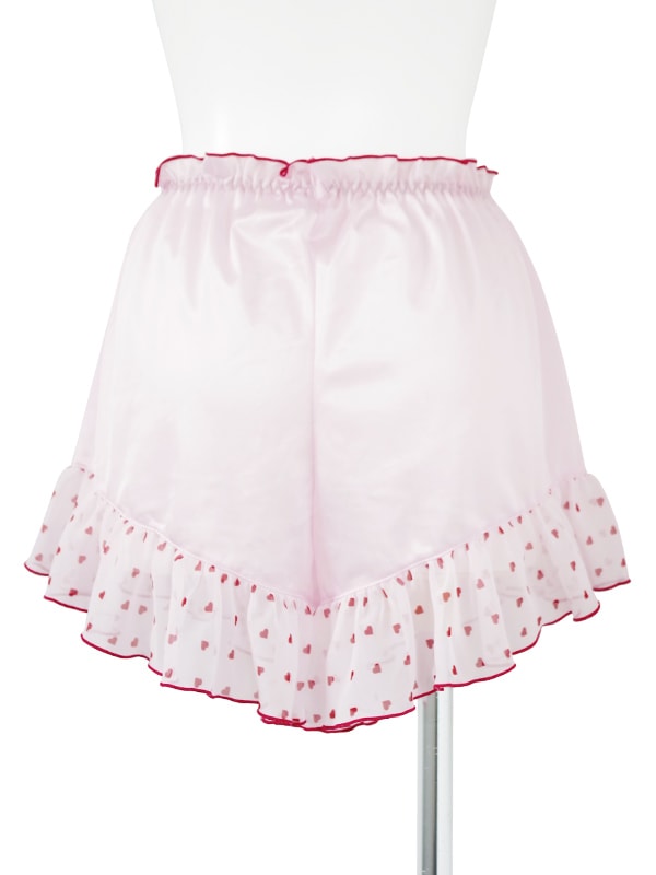 ハートがぎゅっぎゅっと詰め込まれたシフォンプリント生地にリボンをかけて、とびきりラブリーに。