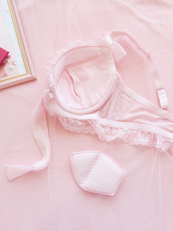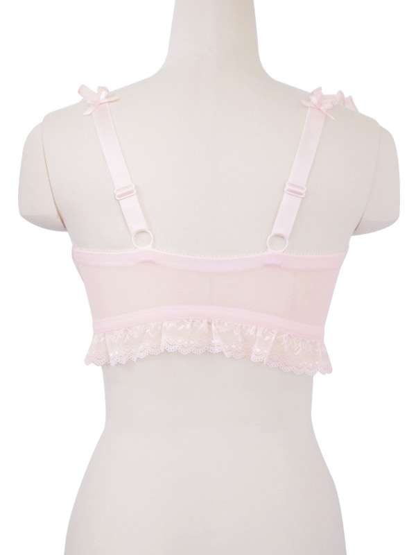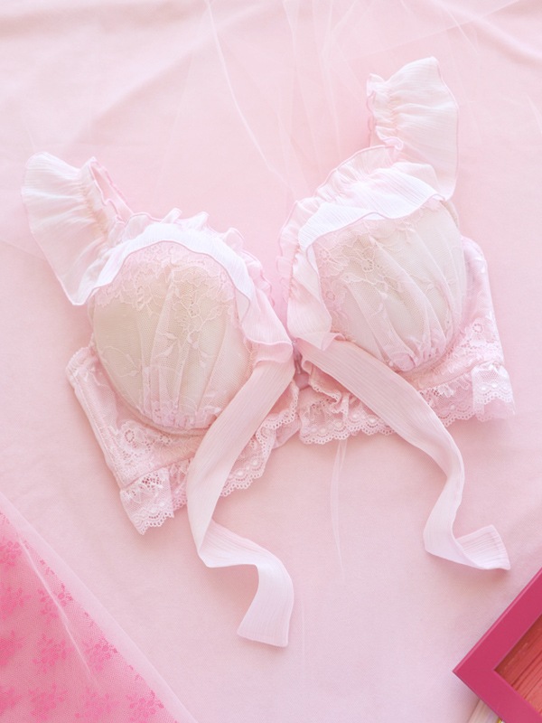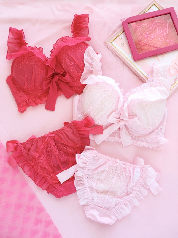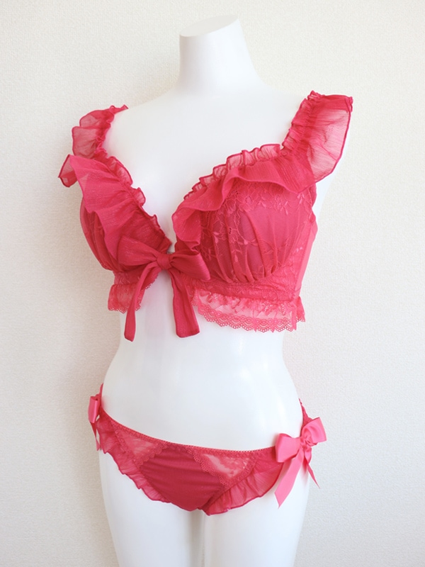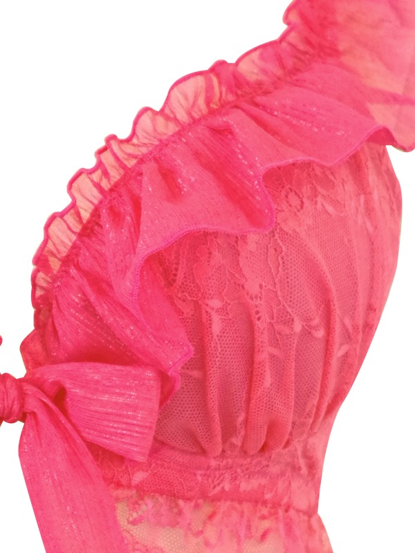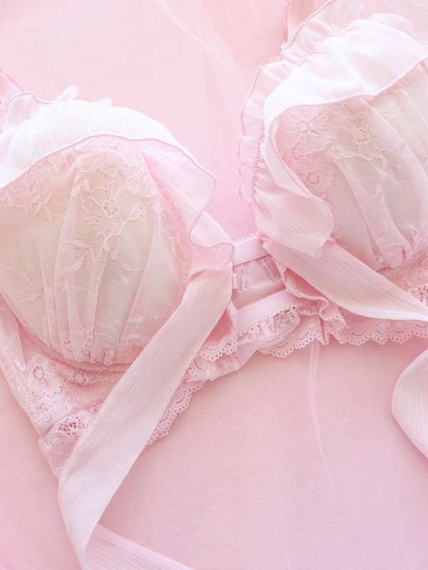 中央の大きなリボンがとびきりキュートなランジェリー。キラキラ輝くラメシフォンで特別感溢れるデザインに仕上げました。