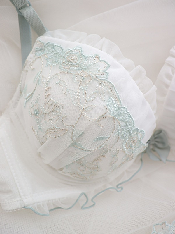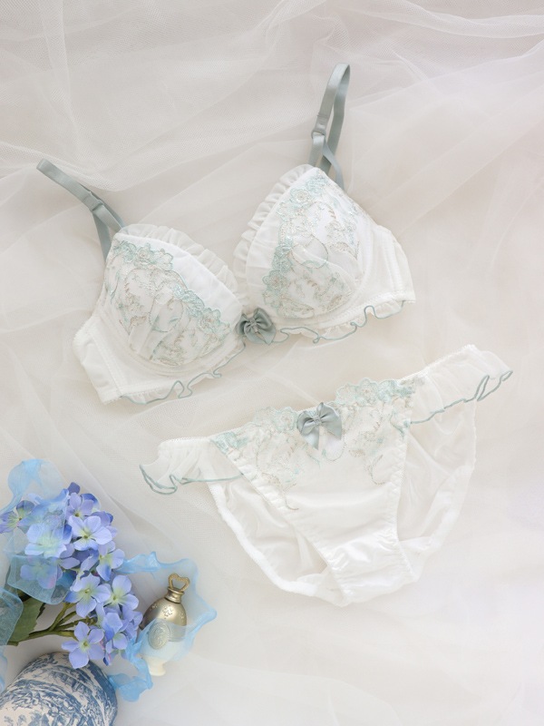 くしゅっとギャザーを寄せたチュールに、ラメがきらめく刺繍レースをふんわり重ねて可愛らしく。バイカラーの刺繍レースやリボン、メロー仕立てが映えるデザインに仕上げました。