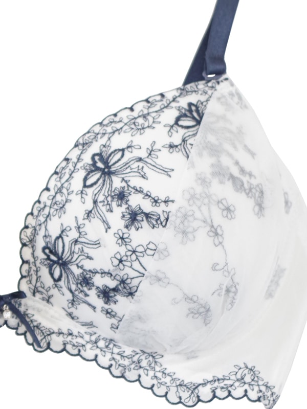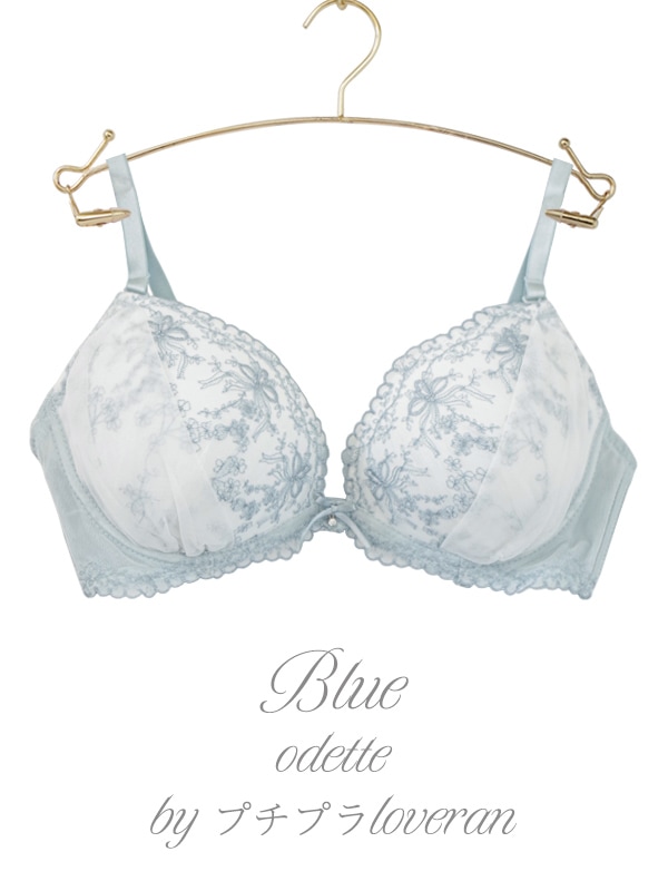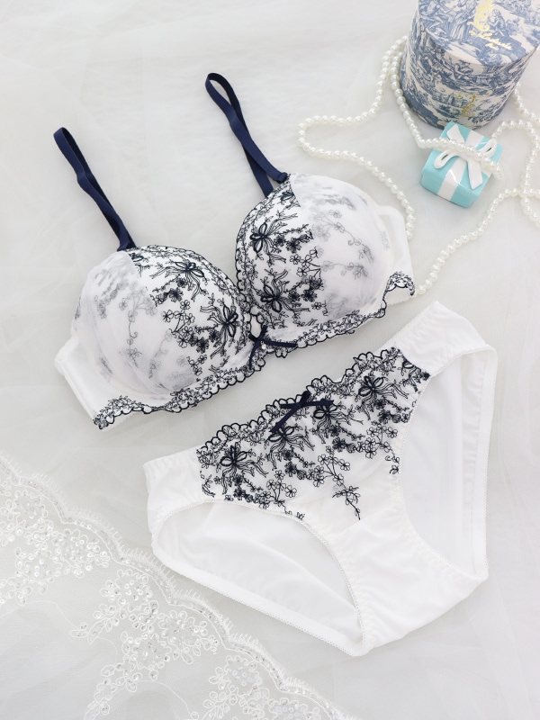 繊細な小花柄レースにふんわりとチュールを重ねてピュアな印象に。おそろいのショーツとセットのプチプライスランジェリー。