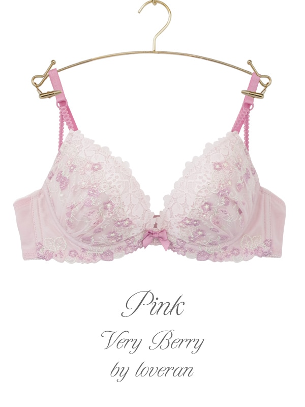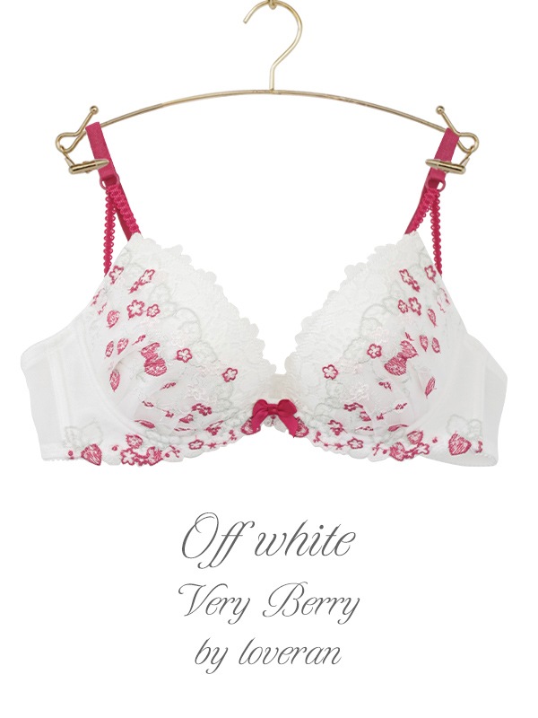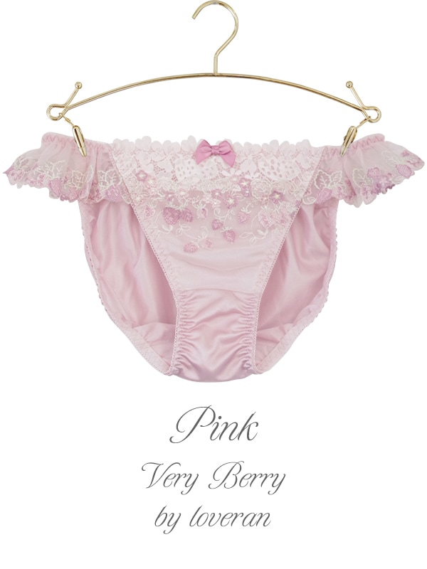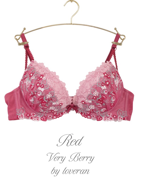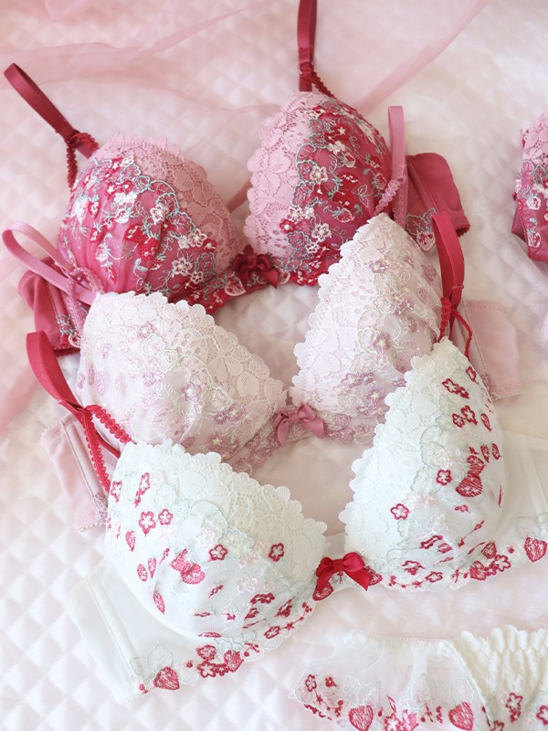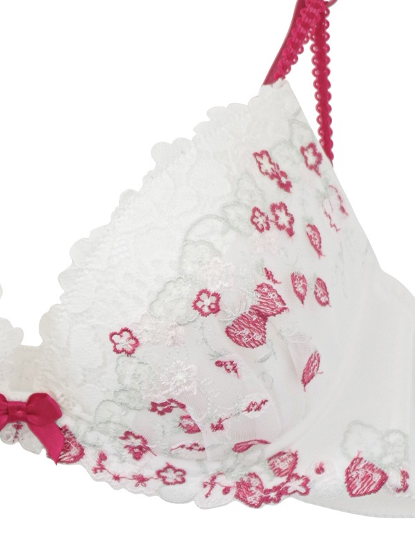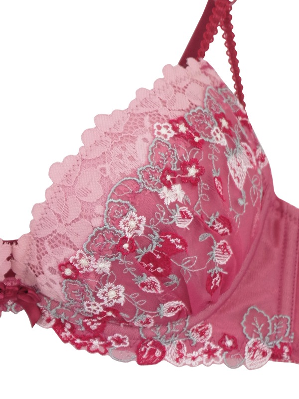 いちご柄のレース&刺繍レースのデイリー使いしやすいブラセット。かわいいいちごカラーの3色展開!