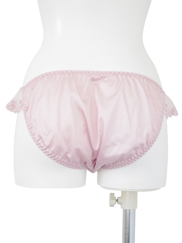 セットショーツは、透けるレースがポイントのサイドフリルタイプ。後ろは全体を包み込む安心感のある履き心地です。