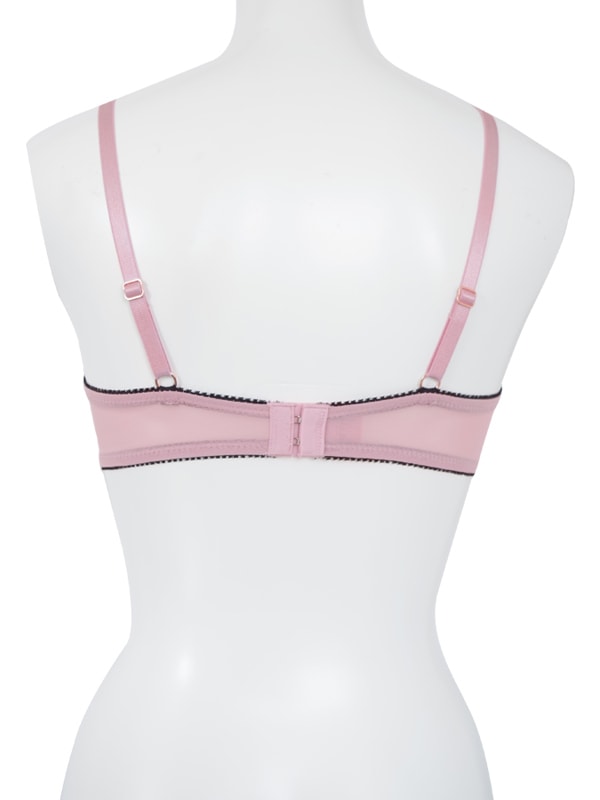 C字型ワイヤーでバストを持ち上げ、ふっくらしたデコルテをメイク。中心台高めで安定感のある着け心地のデイリーブラパターン。