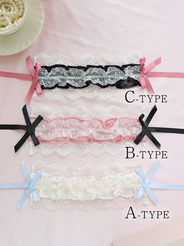 ハート柄チュール×レースフリルがキュートなヘッドドレス。地雷ちゃん・量産ちゃんコーデにもおすすめ♡