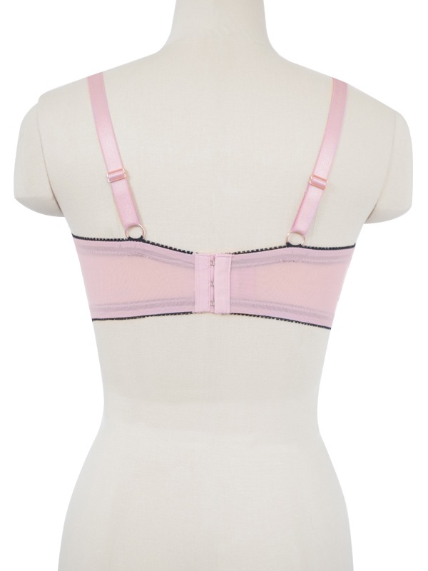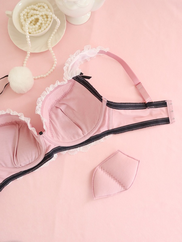 C字型ワイヤーでバストを持ち上げ、ふっくらしたデコルテをメイク。中心台高めで安定感のある着け心地のデイリーブラパターン。