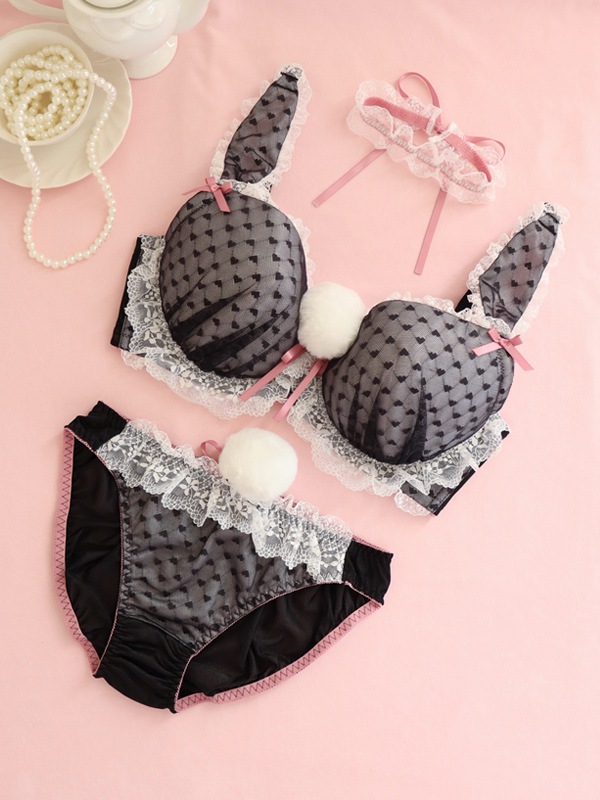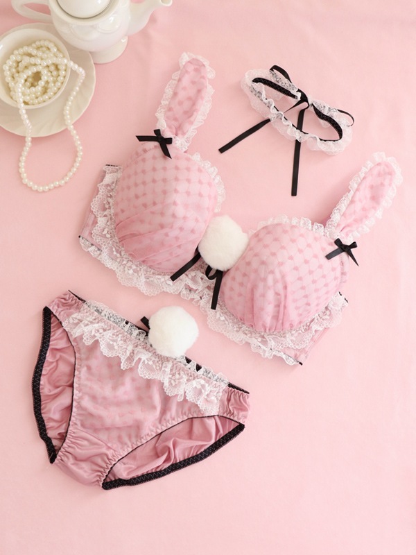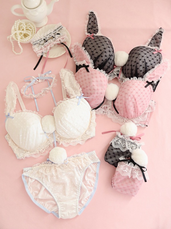 かわいいウサギになれちゃうブラ&ショーツ&チョーカーのセット。