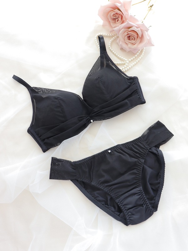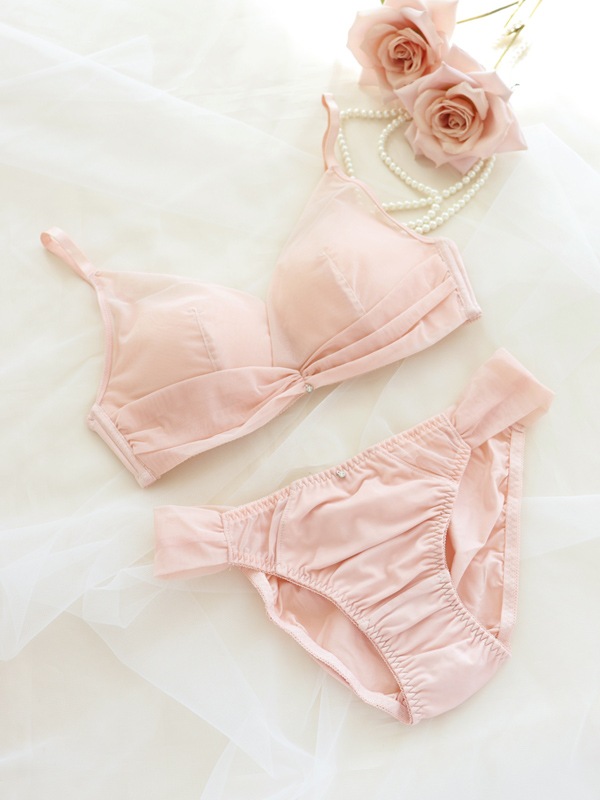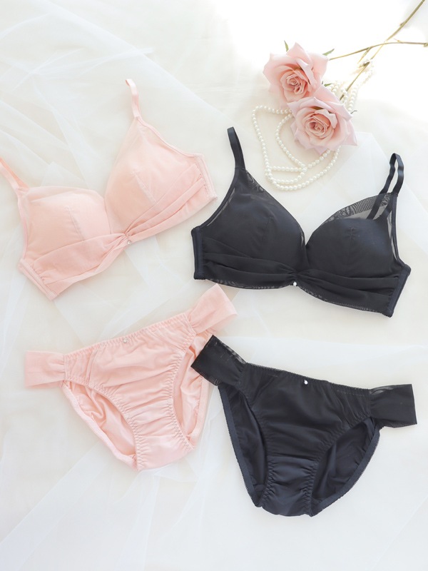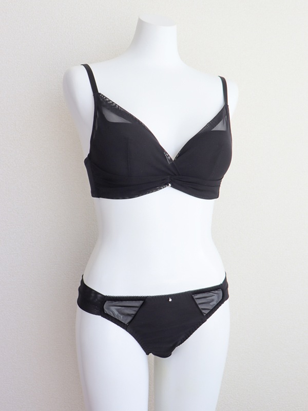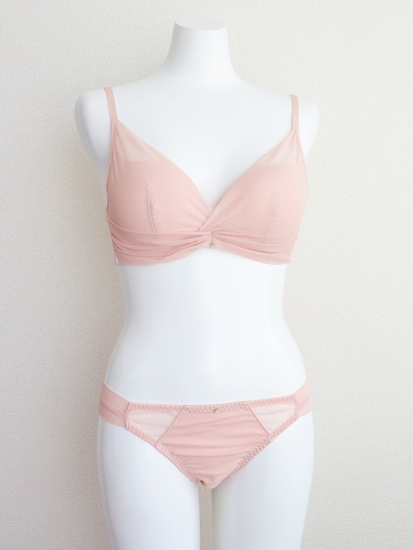 シアーなチュール素材が涼やか。カップ下にドレープ飾りをあしらって、大人可愛いデザインに仕上げました。