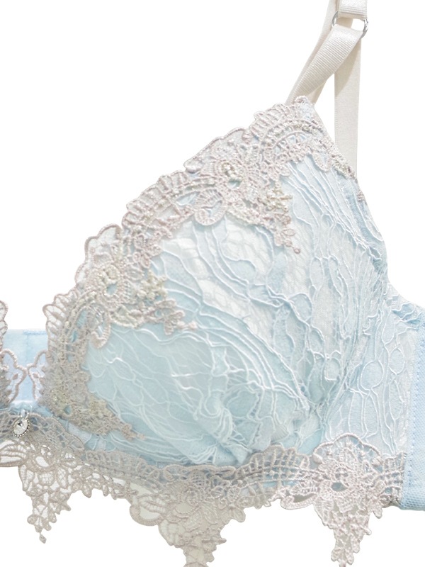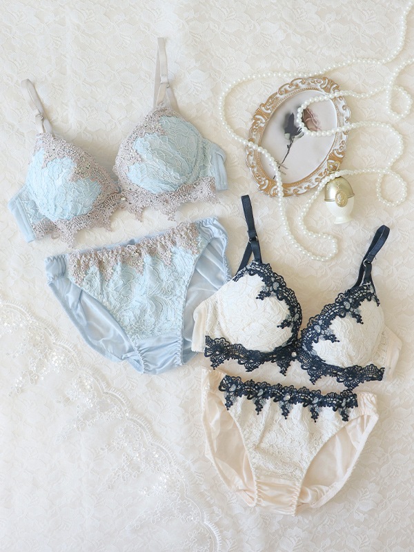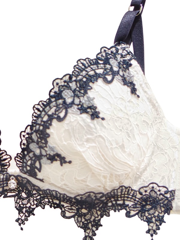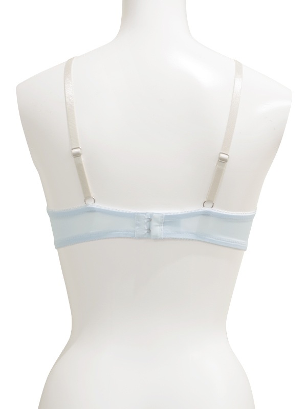L字型ワイヤーで脇からバストを寄せ、中央にキープ。2枚のパッドでバストをプッシュアップするWパッドパターン。パッドは2枚とも取り外し可能。