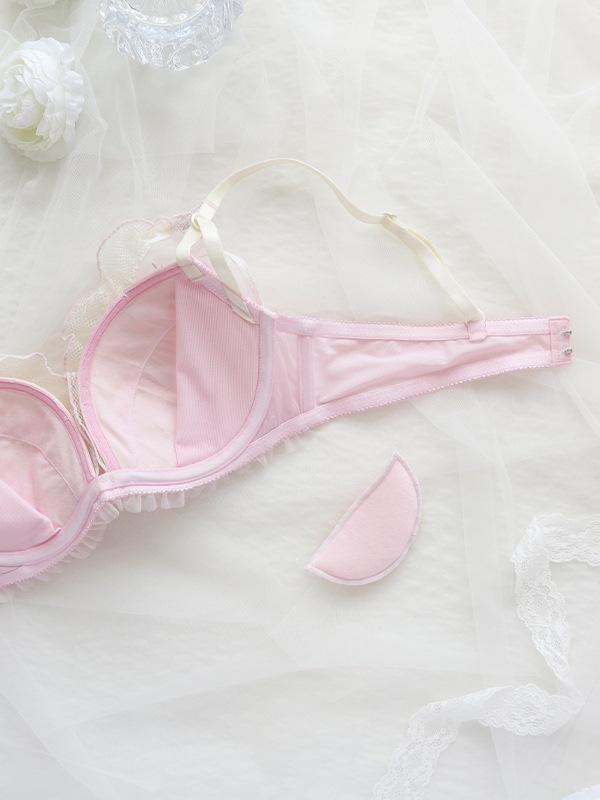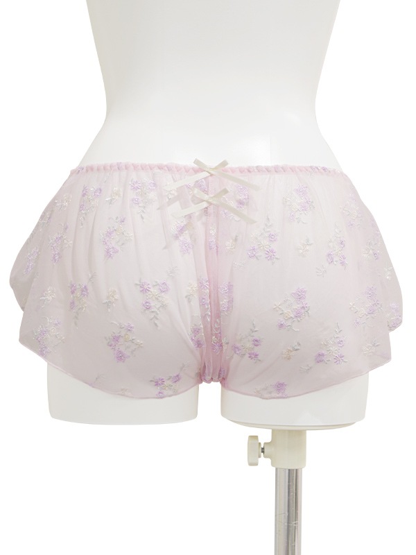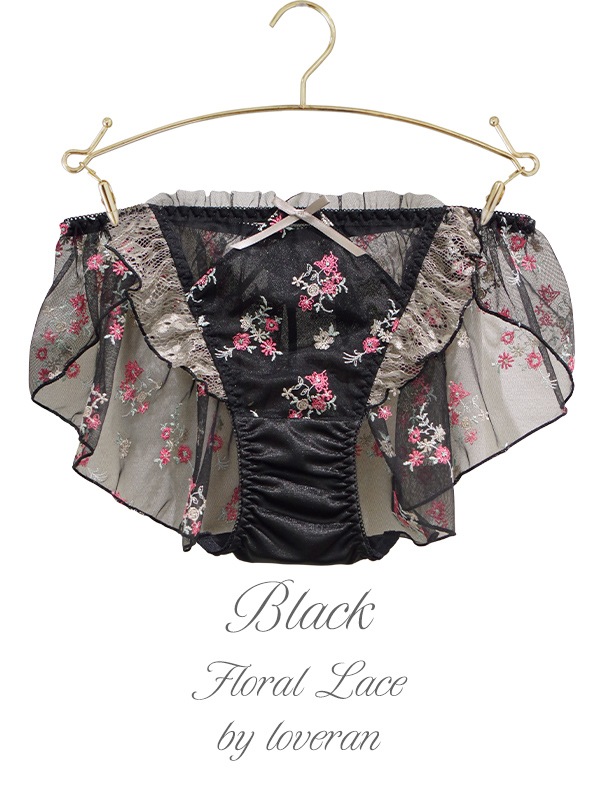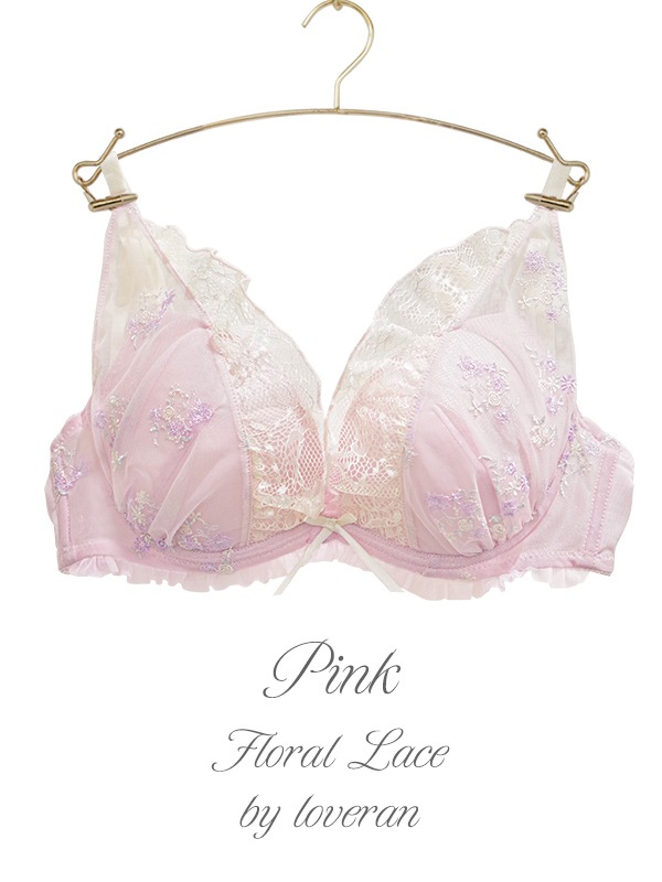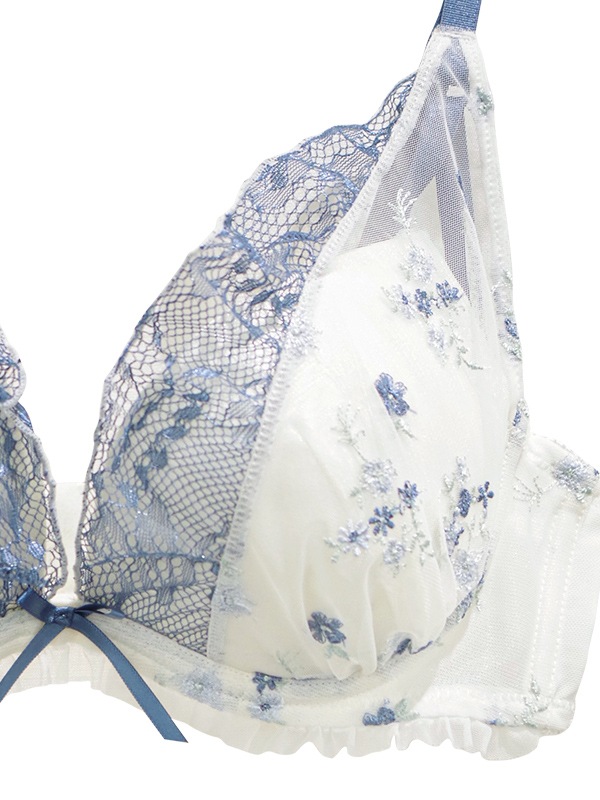 シアーなチュールに散りばめた小花柄刺繍がかわいいブラセット。ふりっとしたレースを組み合わせてガーリーに仕上げました。
