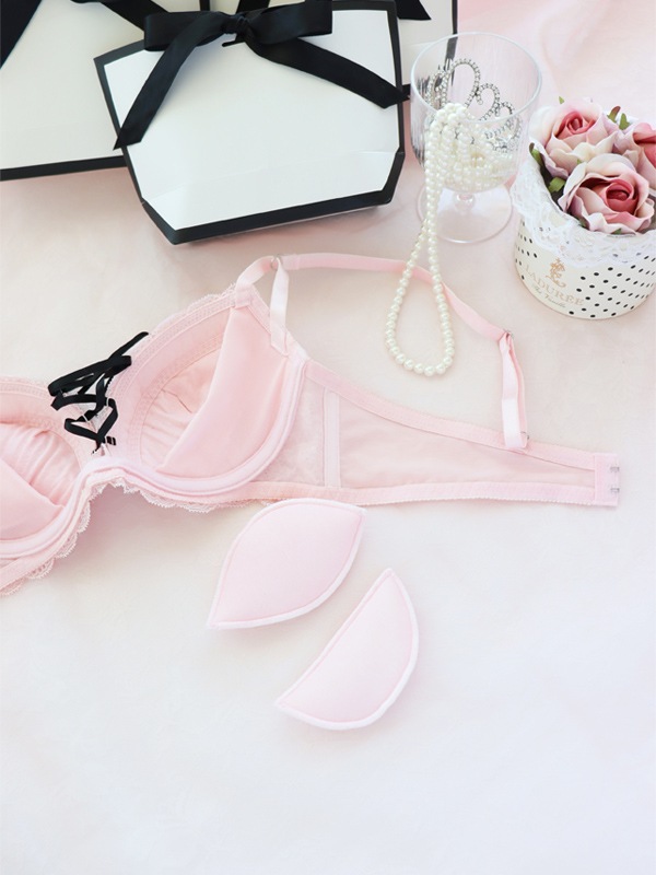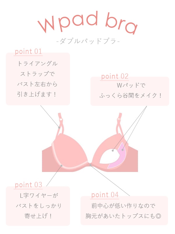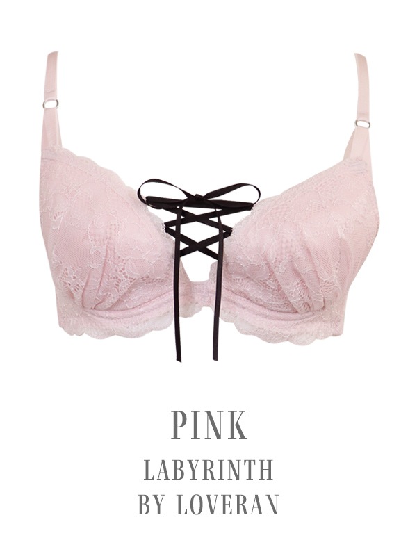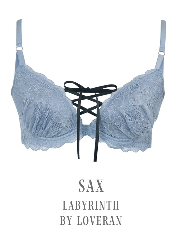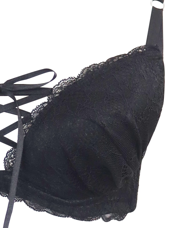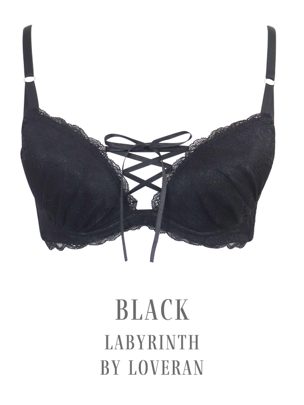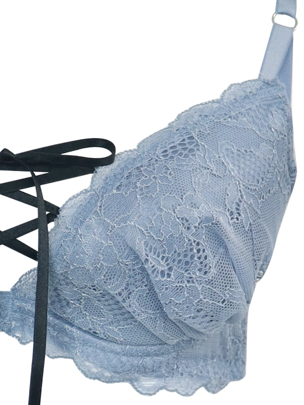 胸元のレースアップデザインがポイントの人気シリーズ。L字型ワイヤーでバストを中央に寄せ、二枚のパッドでくっきり谷間をメイクします。