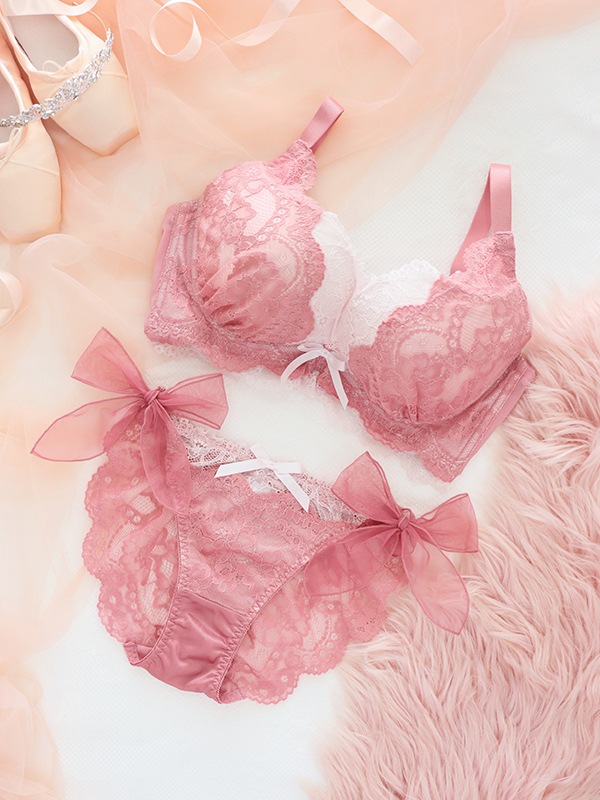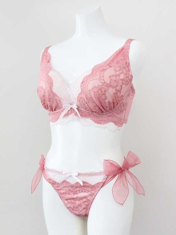 繊細なストレッチレースをたっぷり使用。大きなリボンで甘さをプラスしました。