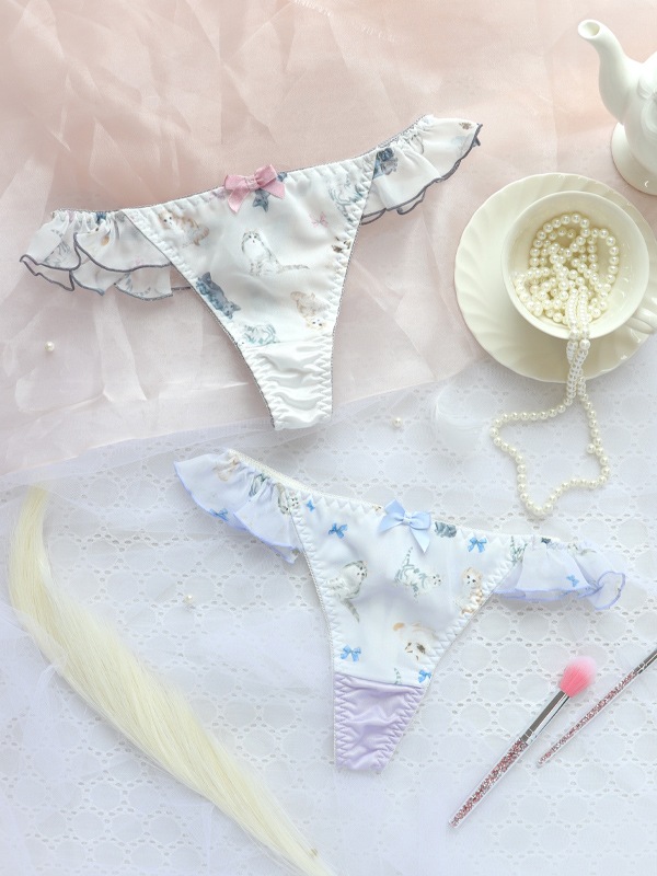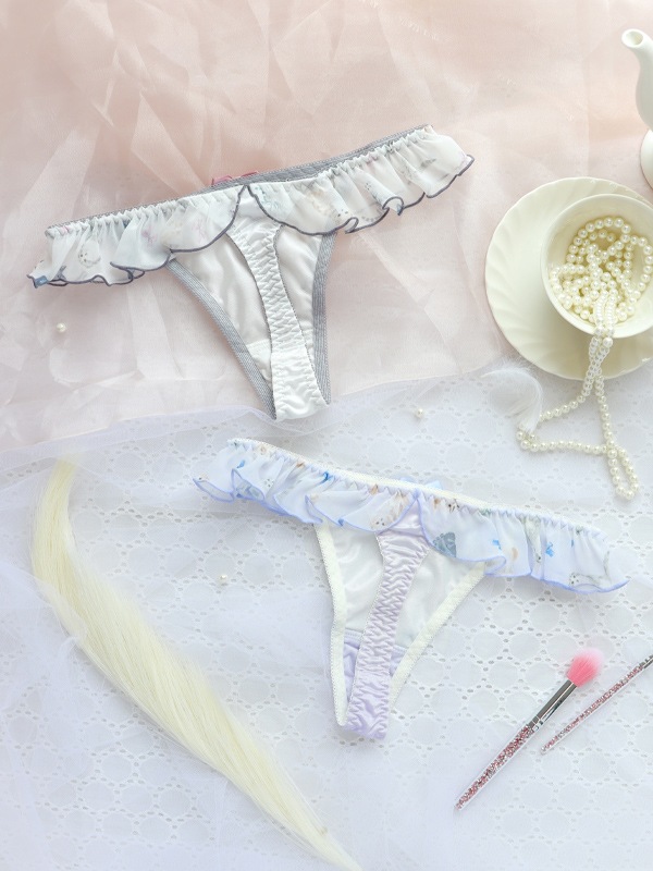 サイドからバックまでつながるフリルがフェミニンなTバックです。