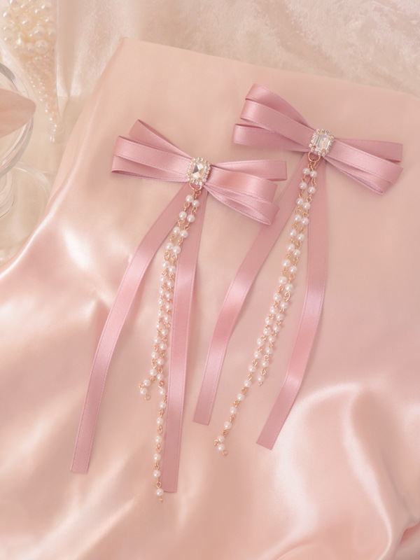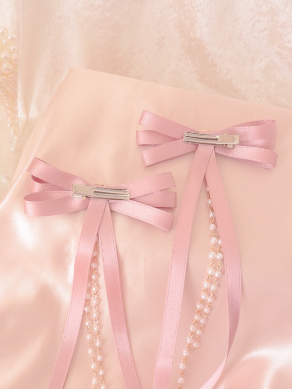揺れるリボンとパールがスイートなヘアクリップ。