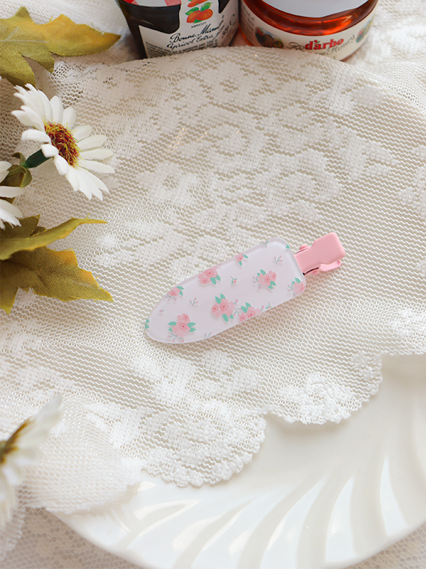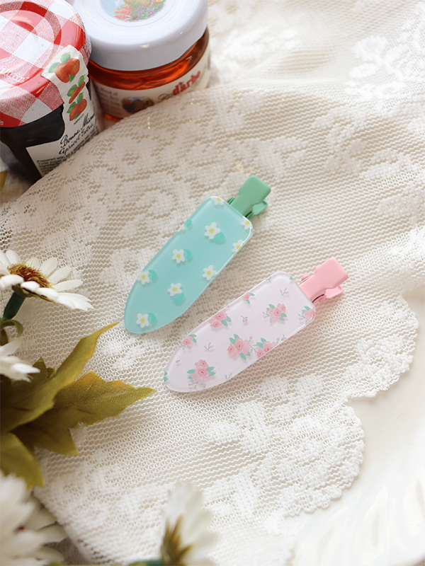 小バラと白いお花の組み合わせが少女ガーリー。洗顔やメイクをするときに便利!前髪を左右で留められるお得な2個セット♪
