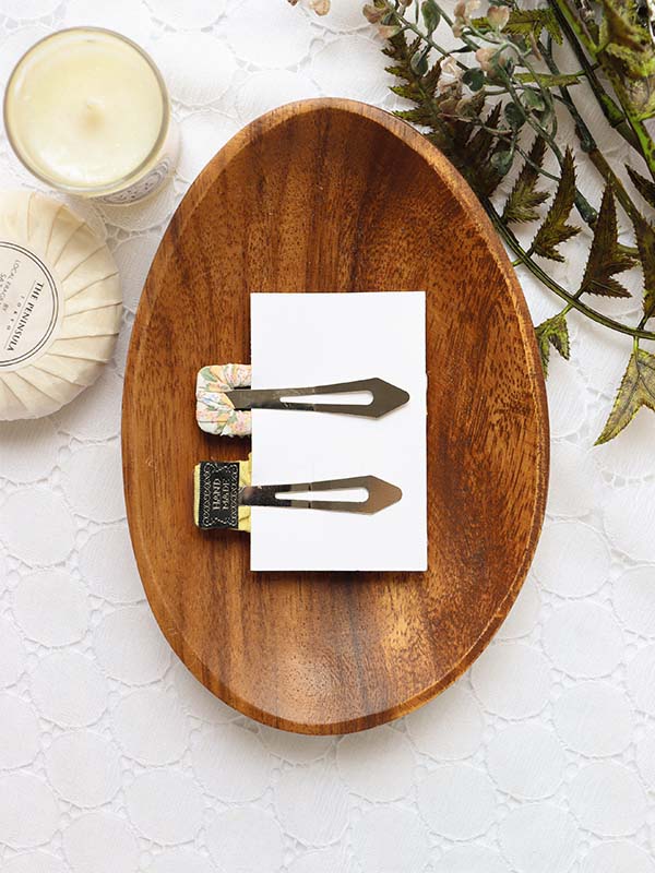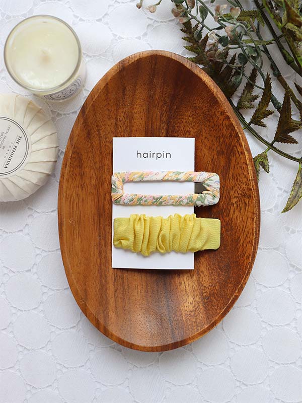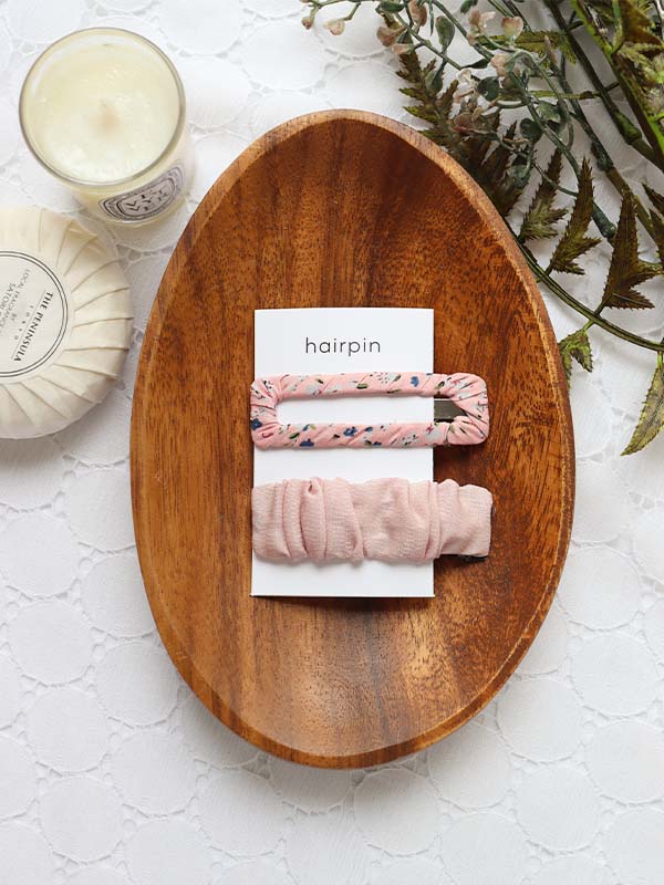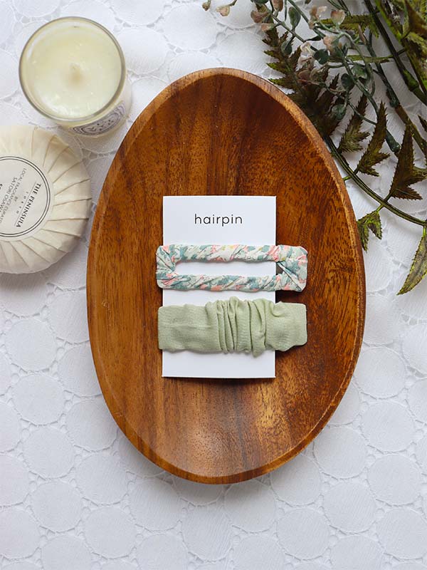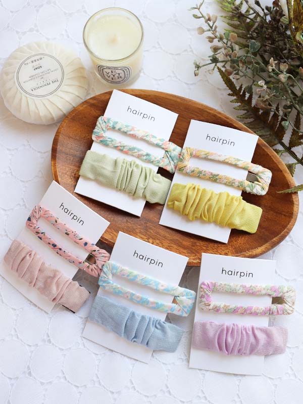 ボタニカルな花柄とアースカラーのヘアピンセット。
