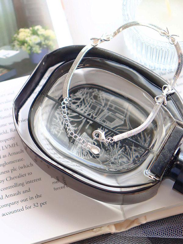 3つのリボンがかわいいブレスレット。腕の側面からもチラッと顔をのぞかせます。