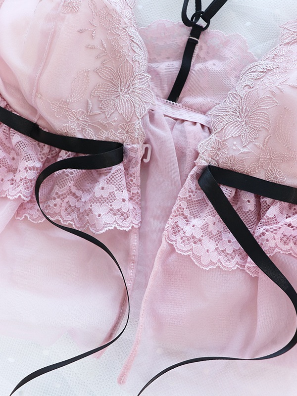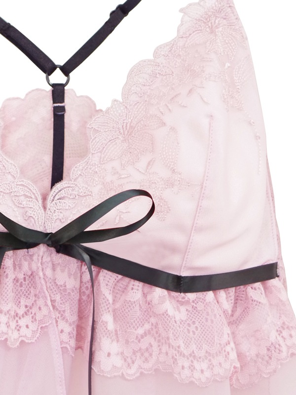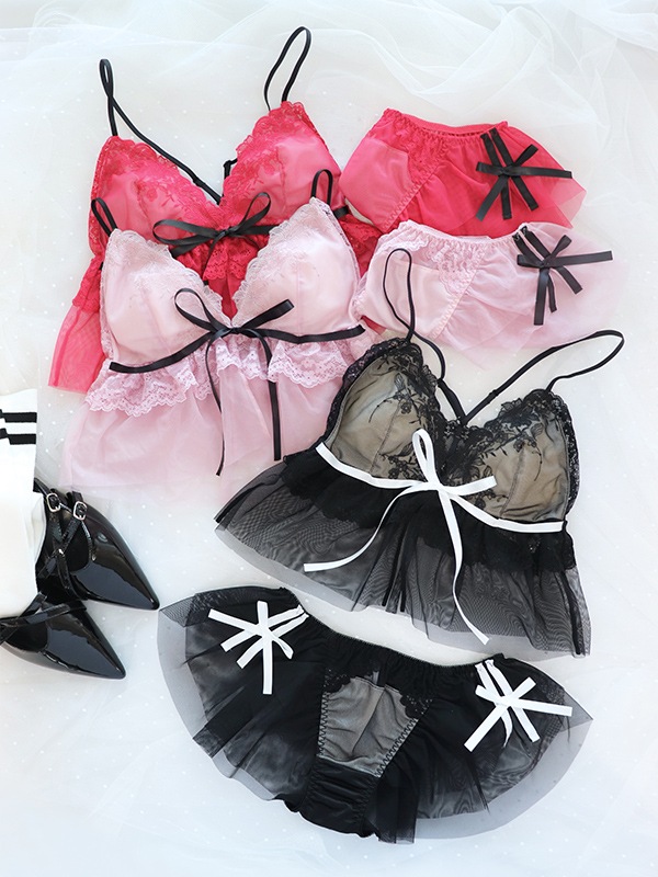 軽い着け心地でアクティブに過ごせるブラレットは着脱のしやすいフロントホックタイプ。中央のほどけるリボンが可愛い♡