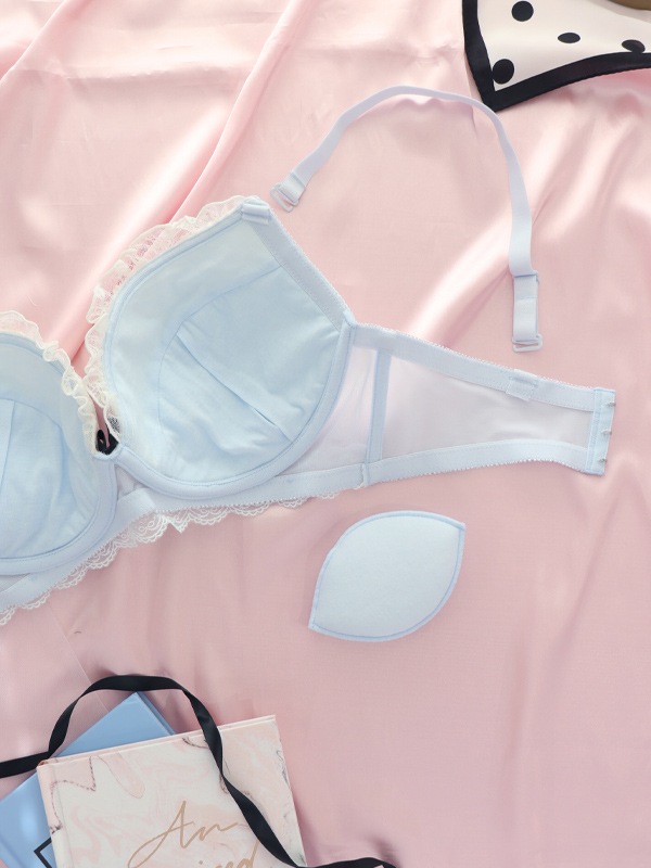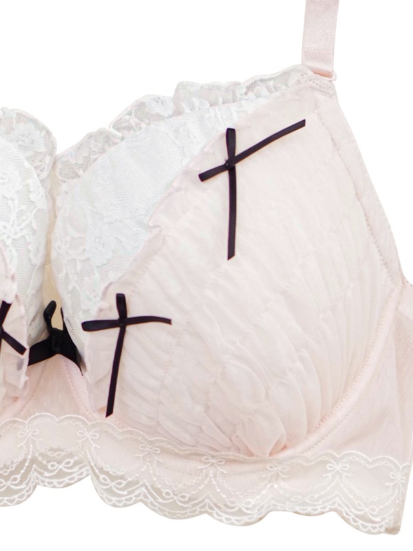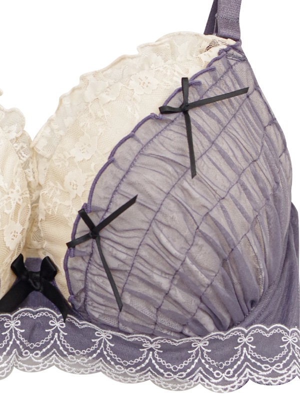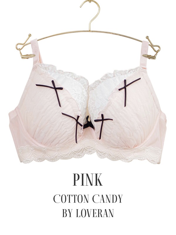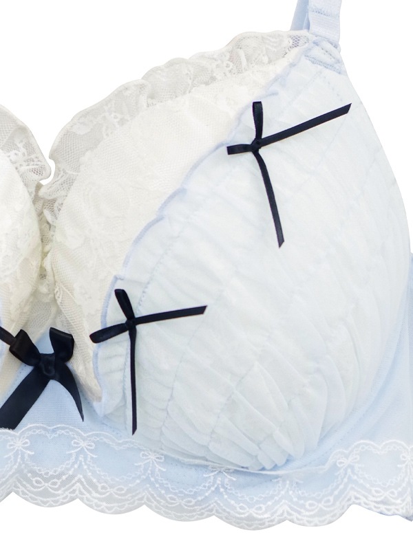 薄モールド+やわらかパッドで、ふわふわまあるいバストをメイクするふわりータッチブラパターン。軽やかなC字型ソフトワイヤー仕様。