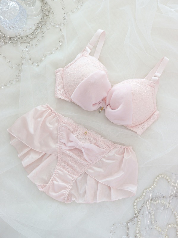 ふんわり大きなリボンがキュート!キラキラのシフォン素材と繊細なストレッチレースをあしらい、かわいさをぎゅっと凝縮♡