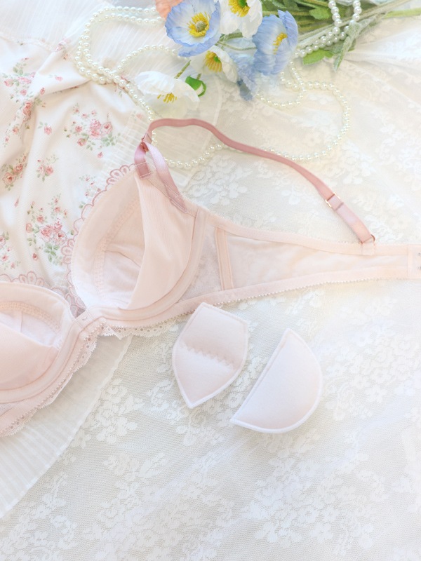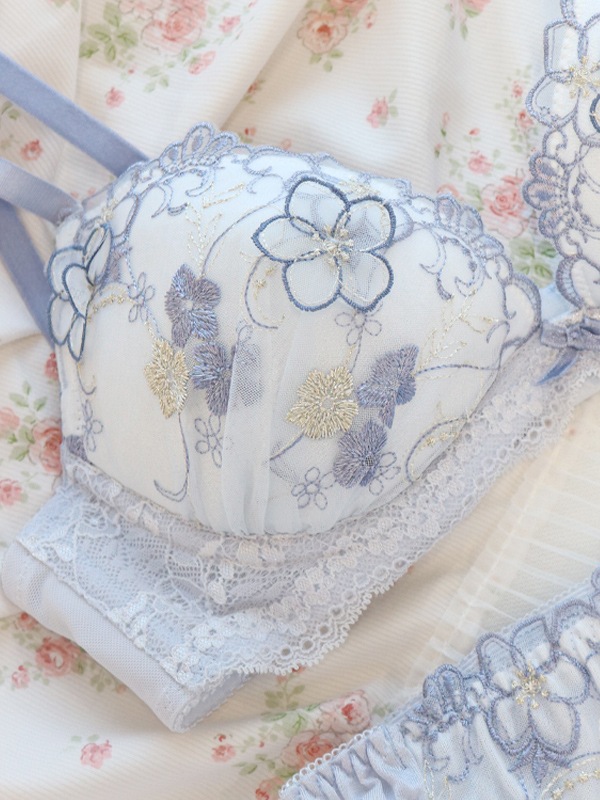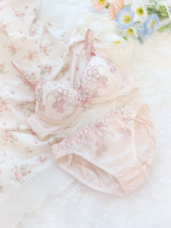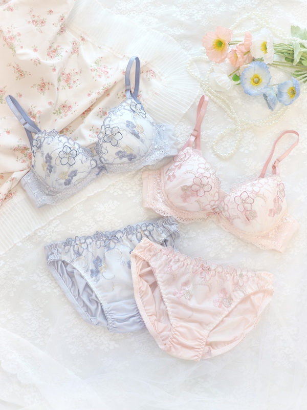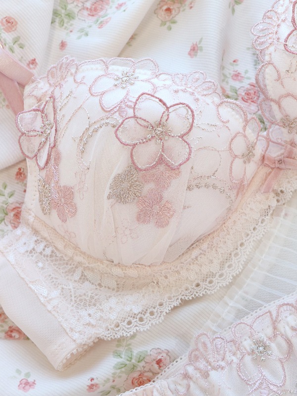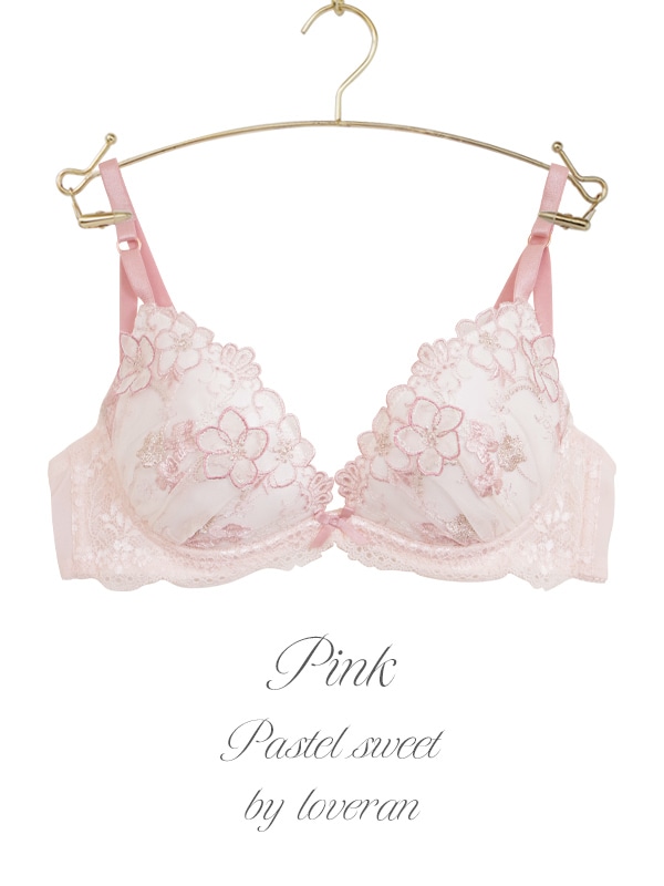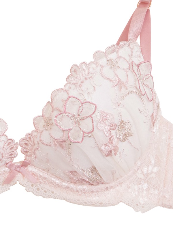 ラメ糸がキラキラときらめくフラワー刺繍のフェミニンなブラセット。
