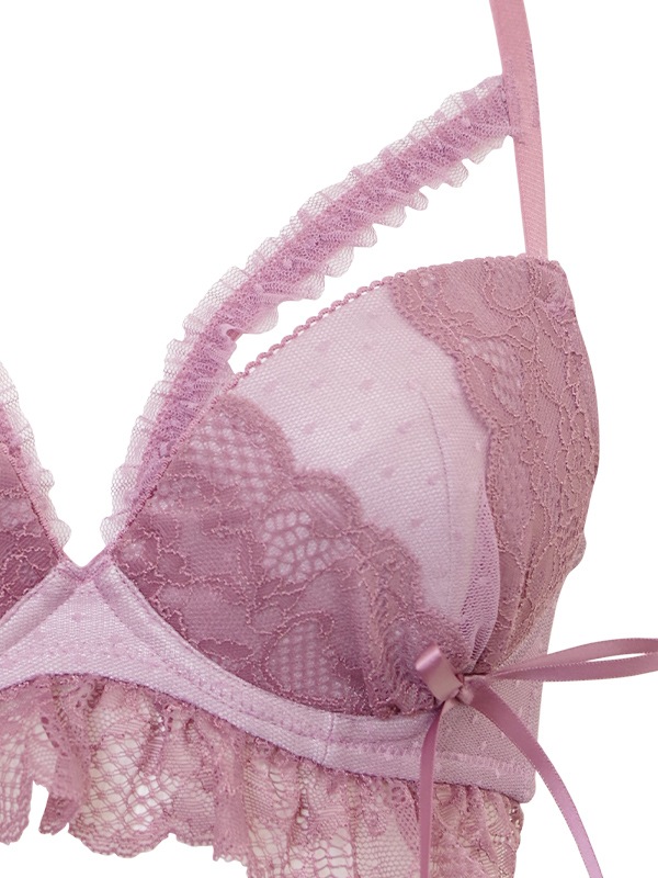 フリルやリボンをあしらったガーリースタイルにちょっぴりセクシーさを取り入れて。