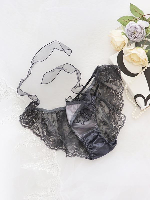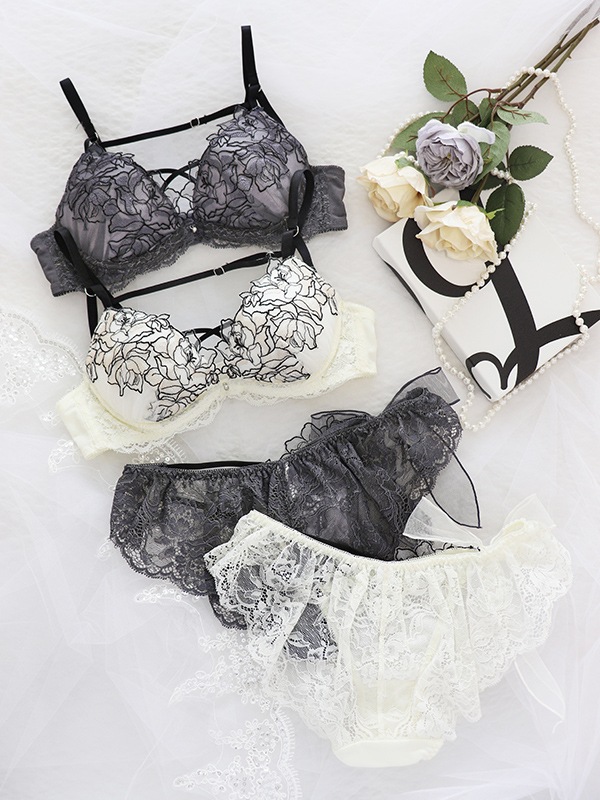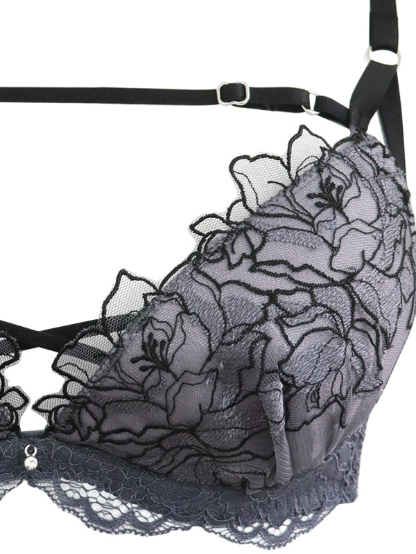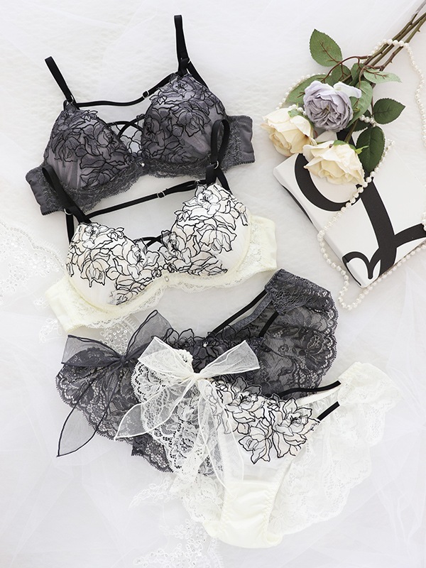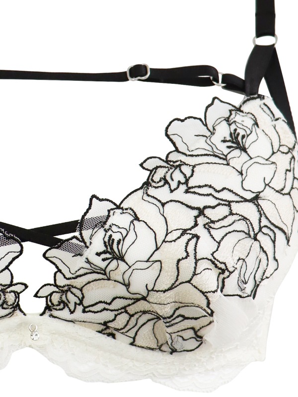 縁取られたフラワー刺繍レースに、ブラックコードのアクセントで挑発的な色気を纏って…。