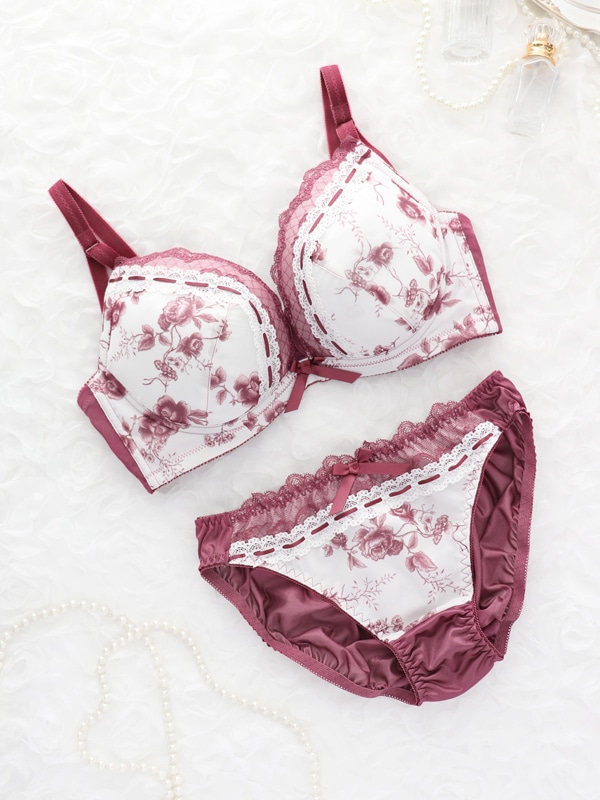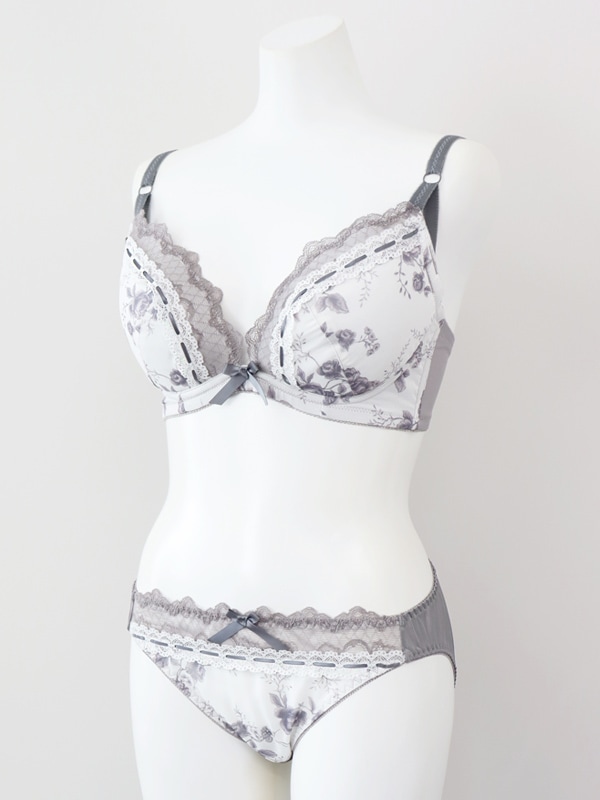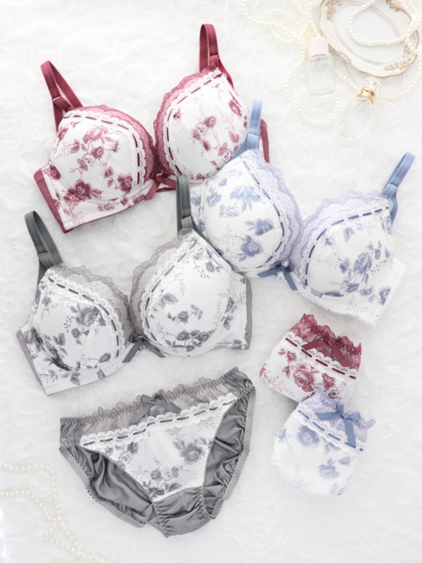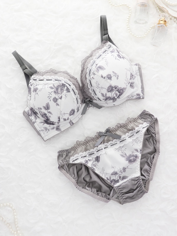 アンティークな雰囲気のローズプリントシフォンにレースを組み合わせ上品に仕上げました。