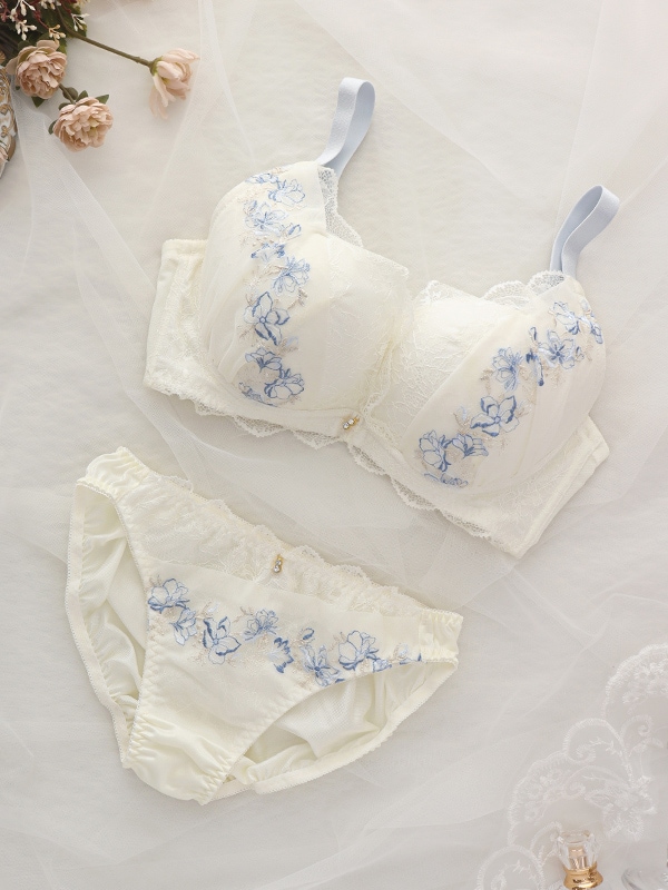 刺繍を施したチュールレースと繊細なストレッチレースの組み合わせがクリアで上品な印象を与えるブラセット。