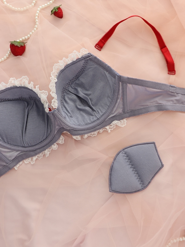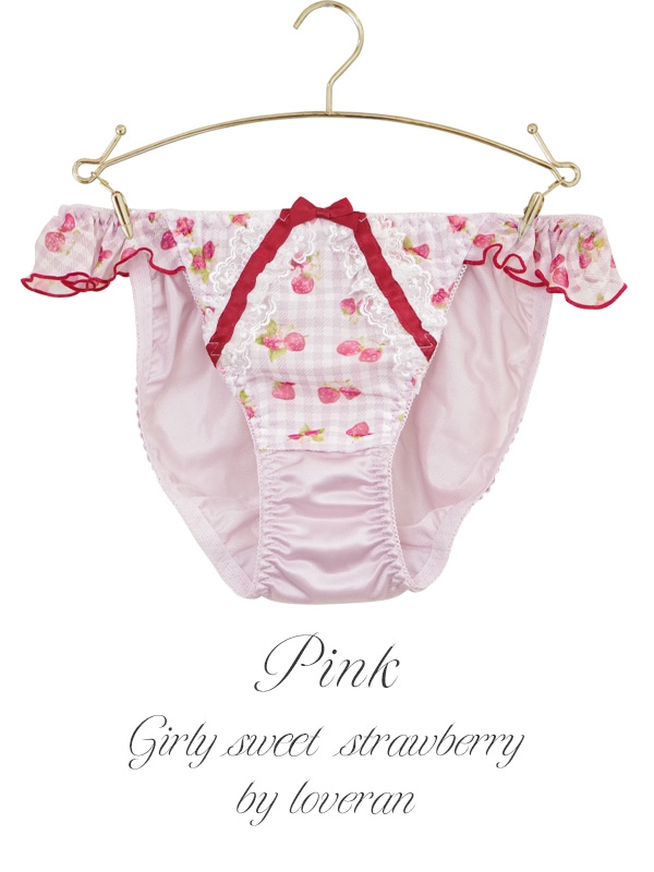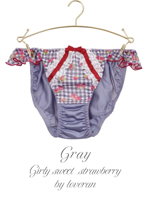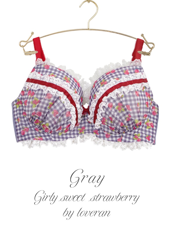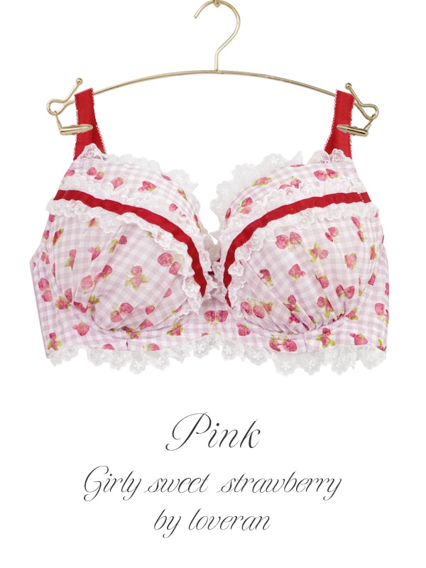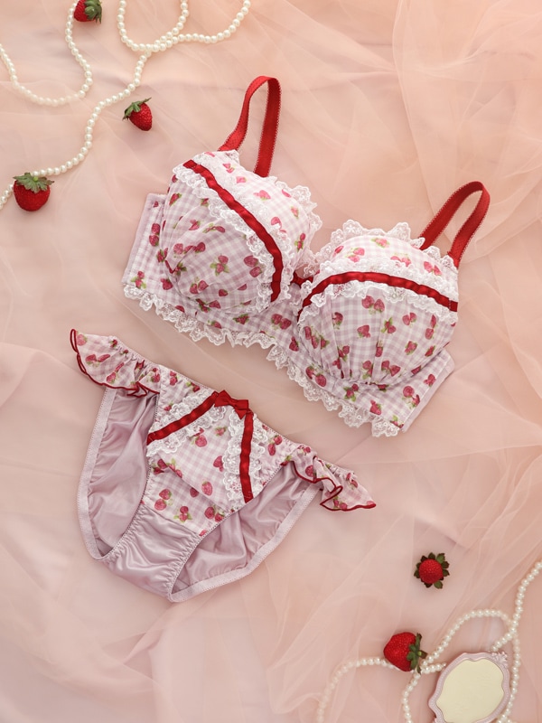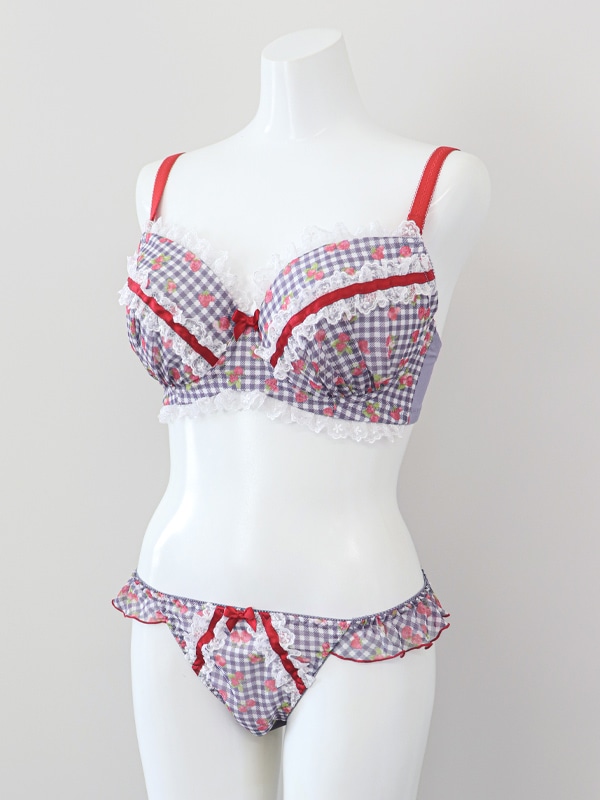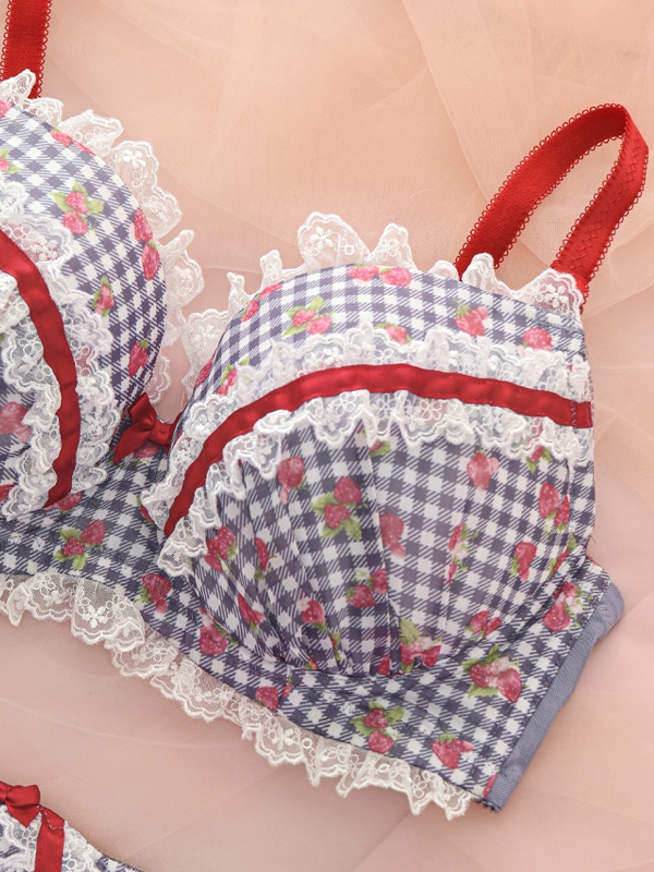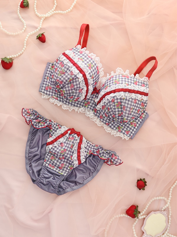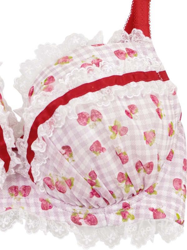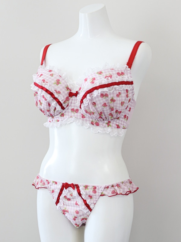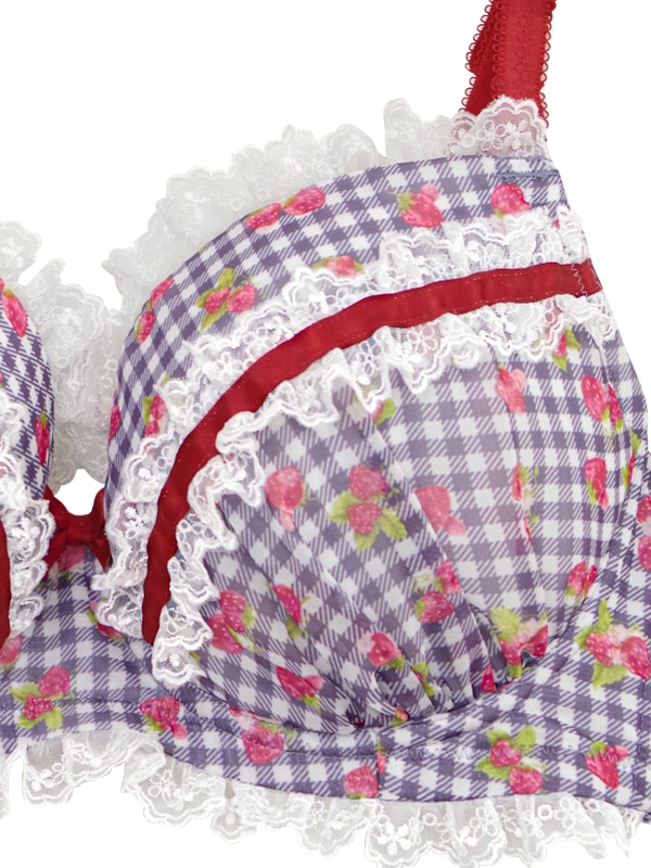 シフォン生地にギンガムチェック&いちご柄をプリントしたガーリーなブラセット。